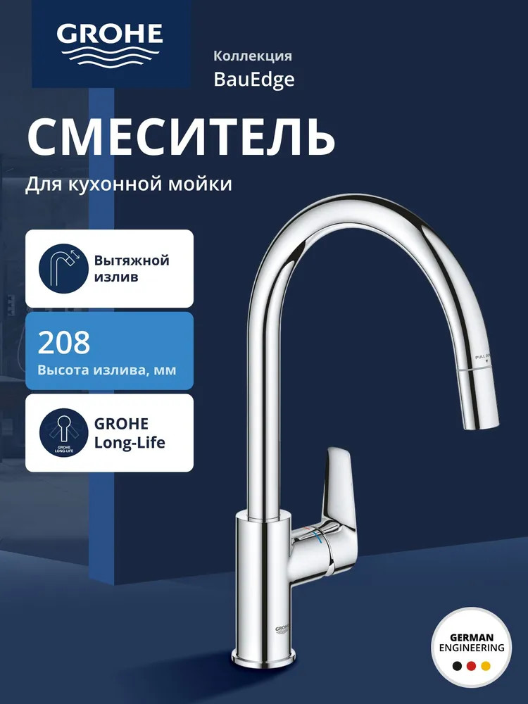 • Grohe Long-Life Finish — стойкое долговечное покрытие;