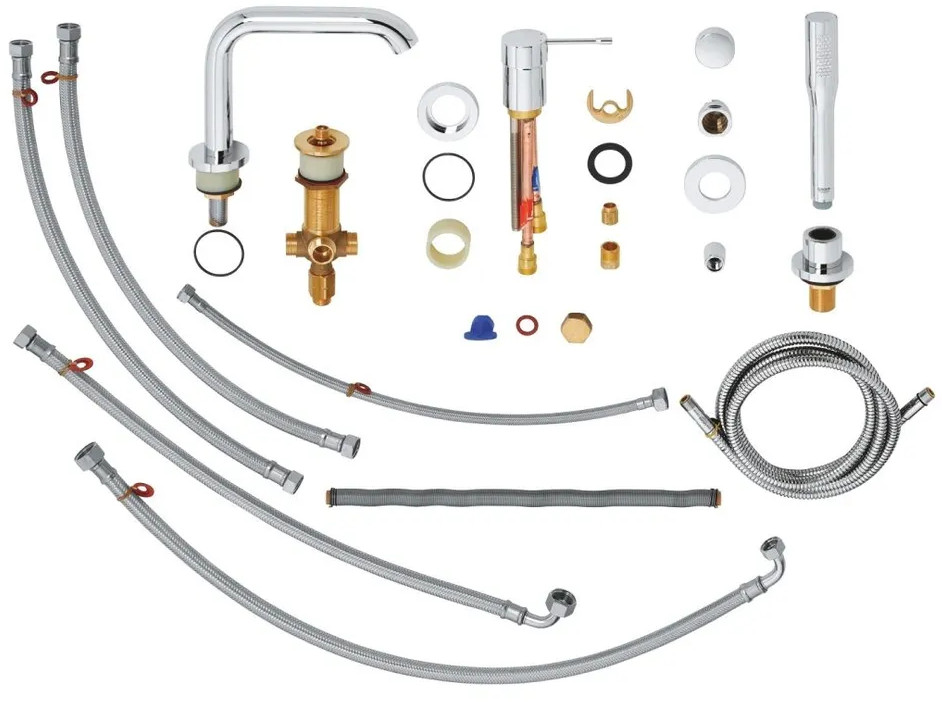 • комплект из латуни износостойкий, устойчивый к ржавчине и известковому налету, долговечный и простотой в уходе;