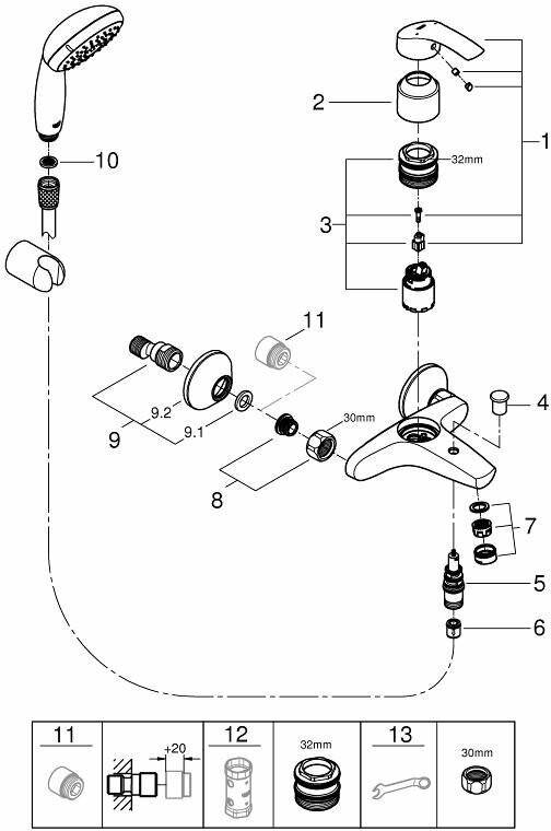 Grohe Смеситель для ванны с душевым наборомновинка -20%