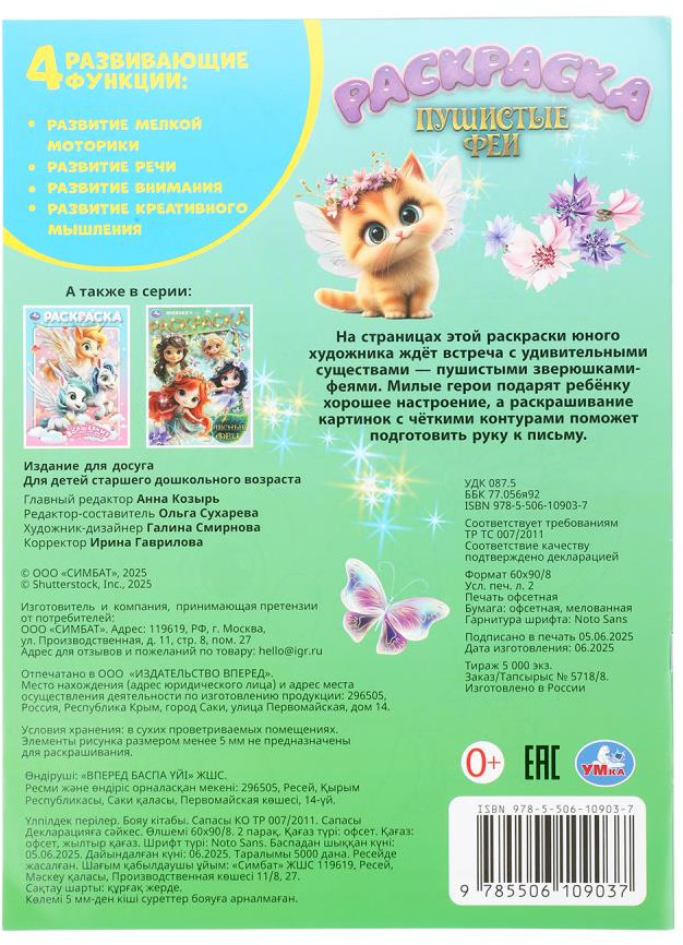 💳 Оплатить за товар можно при получении 🇰🇿 Есть бесплатная доставка по Казахстану 🎁 Копите бонусы с каждой покупки Раскраска «Пушистые феи» ТМ «УМка» обязательно понравится юным художникам. Эта занимательная раскраска про очаровательных пушистиков-феечек не только скрасит досуг ребёнка, но и поможет потренировать руку к письму. Внутри детей ожидают интересные картинки с чётким контуром и сюжетные тексты к ним. Благодаря удобному формату раскраску можно взять с собой в дорогу. |
