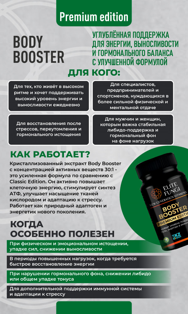 Elite Fungi Комплекс для поддержки тела, энергии и иммунитета «Body Booster Premium Edition»новинка