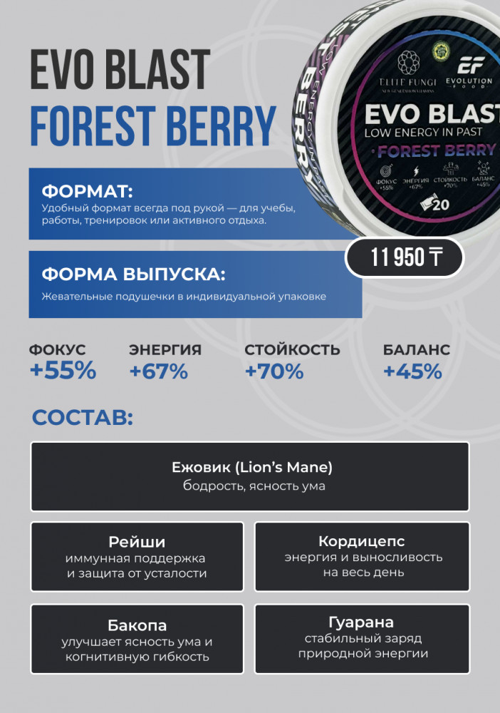 Elite Fungi БАД «Evo Blast Forest Berry»новинка