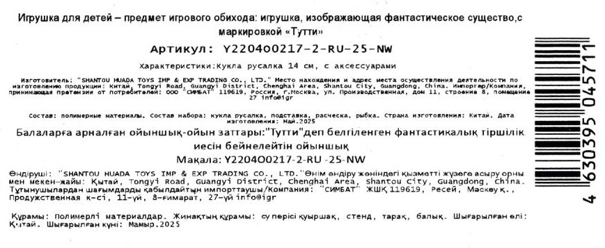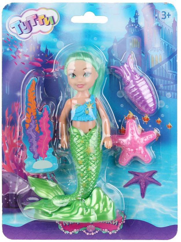 Кукла «Русалка» ТМ «Тутти» станет прекрасным подарком для девочки. Милая куколка в образе русалки с ярким хвостом непременно понравится вашей малышке. У русалочки красивые длинные волосы оранжевого цвета, их можно заплетать в разнообразные причёски. Кукла выполнена из качественного пластика, её можно использовать при играх в воде, как и дополнительные аксессуары из набора, которые выступают также в роли расчёсок. Игра с куклой ТМ «Тутти» развивает: воображение, фантазию, мелкую моторику, речь и социально-коммуникативные навыки. |