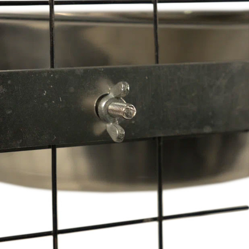 Миска из нержавеющей стали с креплением для вольера на болтах. Удобное крепление позволят легко и надежно закрепить миску в клетке или вольере вашего питомца. Прочный и безопасный материал — нержавеющая сталь — надолго сохранят свежесть воды и корма. Удобный и легкий аксессуар для путешествий.
