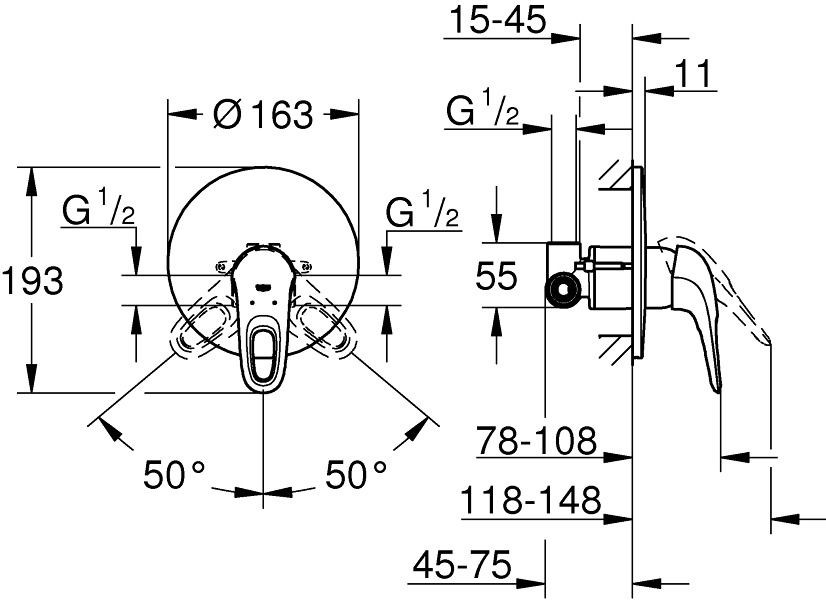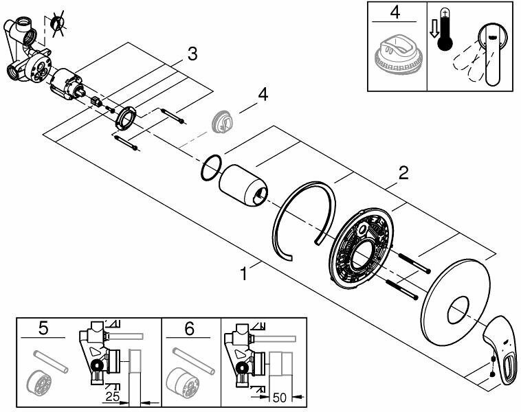• Grohe SilkMove керамический картридж (диаметр 46 мм);