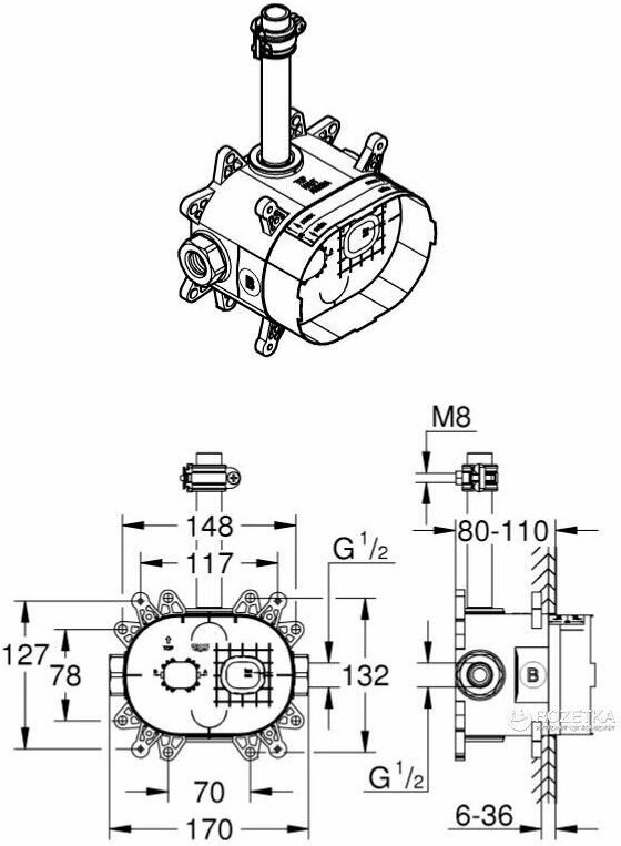 Grohe Встраиваемый механизм для верхнего душановинка -20%