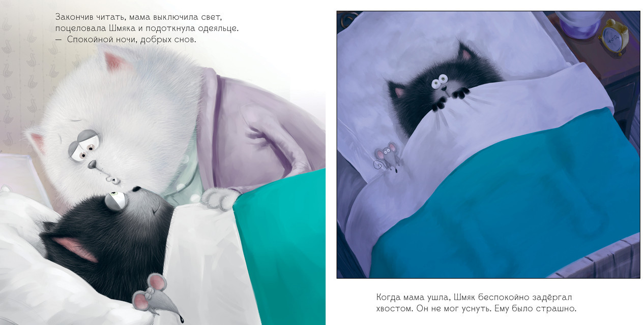 Серия: Книжки-картинки Любимые истории про котенка Шмяк в удобной МЯГКОЙ ОБЛОЖКЕ! Шмяк обожает слушать сказки мамы перед сном! А больше всего он любит истории о невероятных приключениях отважных котов. Он мечтает быть таким же отважным, сильным и смелым! Но Шмяк еще маленький, и он многого боится. Вот, например, вчера ему приснилось, будто он доблестный рыцарь, который должен спасти принцессу Китти от злого короля Шипа. Но во сне король победил! А что, если и сегодня ему приснится этот пугающий сон? Шмяк ворочался, пытаясь уснуть. Ему вновь приснился все тот же сон, но в этот раз Шмяк победил и стал настоящим героем — теперь ему ничего не страшно! |