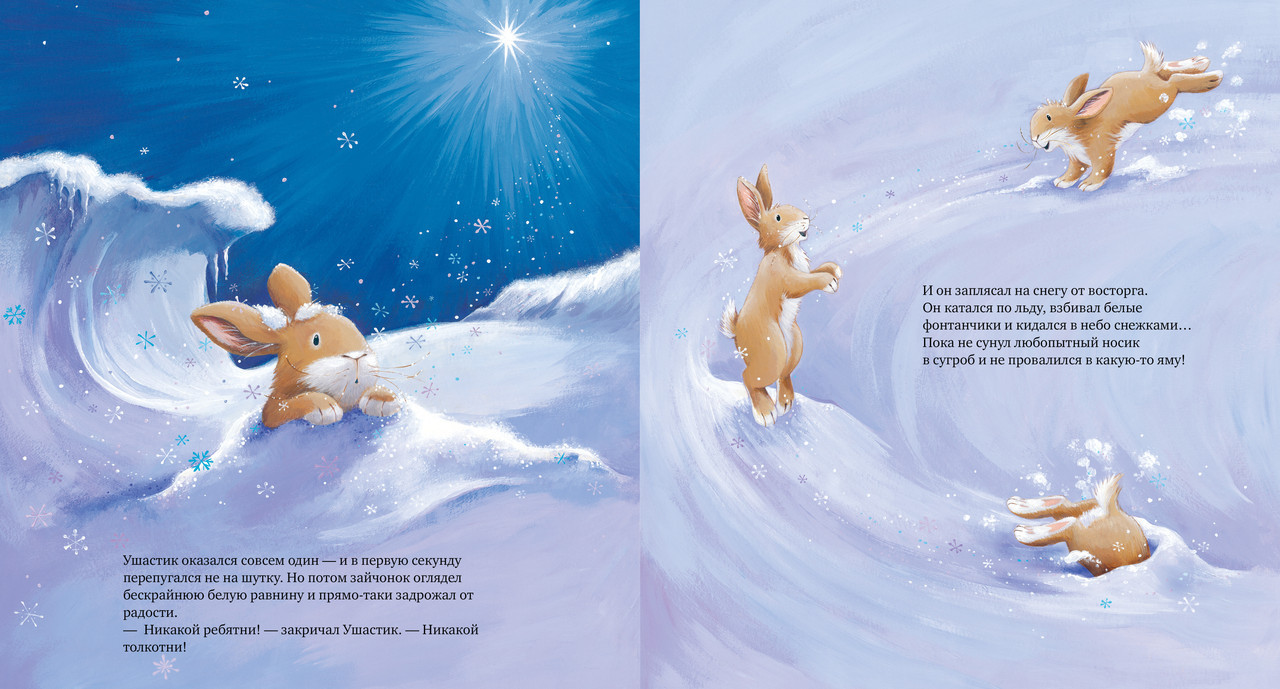 Серия: Книжки-картинки Книга станет приятным открытием для детей и родителей накануне Нового года. Трогательная история научит ценить домашний уют, а замечательные зимние иллюстрации помогут развить чувство прекрасного. Бедный Ушастик никак не может уснуть — уж очень тесно в их норке. А сестрица Меховушка все норовит обнять брата покрепче. Ушастик решает сбежать из дома. Он встречает Альбатроса, который рассказывает ему о Дальнем Севере, где совсем ничего и никого нет, только звездное небо и снег. Ушастик отправляется в путешествие вместе с новым другом, но в дороге с ним приключается беда. Он остается совсем один... среди снега и льда. Сможет ли зайчик выбраться из передряги и вернуться домой? |