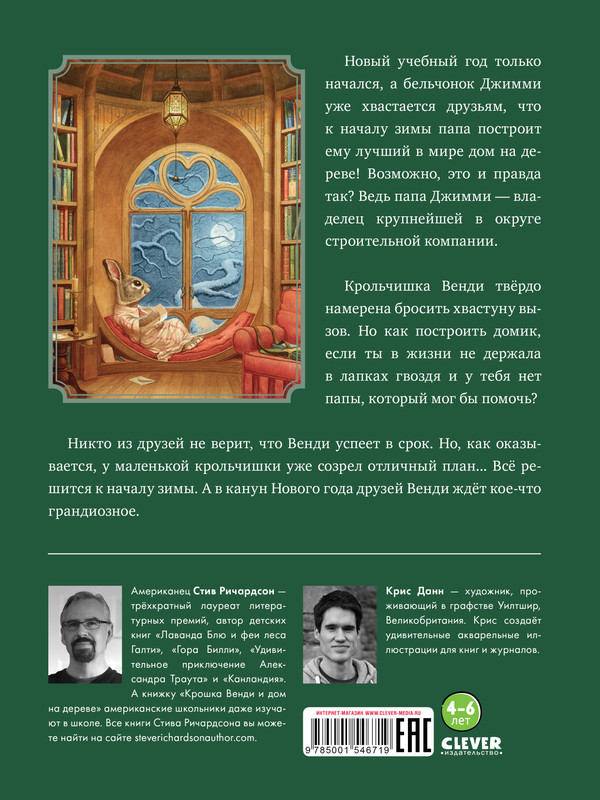 Серия: Книжки-картинки Мировой бестселлер «Крошка Венди и дом на дереве» — это одна из самых трогательных книг, которую вы когда-либо читали! Новый учебный год только начался, а бельчонок Джимми уже хвастается друзьям, что к началу зимы папа построит ему лучший в мире дом на дереве! Крольчишка Венди твердо намерена бросить вызов хвастуну. Никто из друзей не верит, что Венди успеет в срок. Но, как оказывается, у маленькой крольчишки уже созрел отличный план... Все решится к началу зимы. А в канун Нового года друзей Венди ждет кое-что грандиозное. Это история о том, что все в этой жизни возможно. Главное — верить в себя и свои силы. Книга научит никогда не сдаваться и действовать вопреки обстоятельствам, приободрит, придаст уверенности в себе и вдохновит на многие свершения.   |