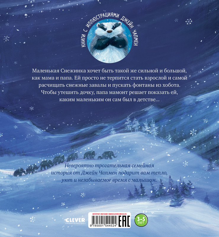 Серия: Книжки-картинки Книга «Хочу быть как ты!» входит в коллекцию «Подарок под елку». Маленькая Снежинка хочет быть такой же сильной и большой, как мама и папа. Ей просто не терпится стать взрослой и самой расчищать снежные завалы и пускать фонтаны из хобота. Чтобы утешить дочку, папа мамонт решает показать ей, каким маленьким он сам был в детстве... |