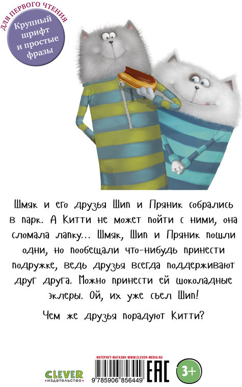 Книга «Котенок Шмяк в парке аттракционов» — это мировой бестселлер Роба Скоттона. Шмяк и его друзья Шип и Пряник собрались в парк. А Китти не может пойти с ними, она сломала лапку... Шмяк, Шип и Пряник пошли одни, но пообещали что-нибудь принести подружке, ведь друзья всегда поддерживают друг друга. Можно принести ей шоколадные эклеры. Ой, их уже съел Шип! Чем же друзья порадуют Китти? Шмяк — один из самых любимых героев маленьких читателей, книга с яркими картинками станет хорошим подарком детям. |
