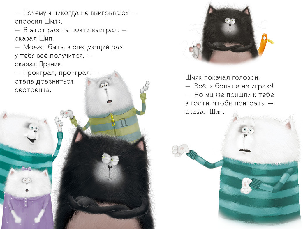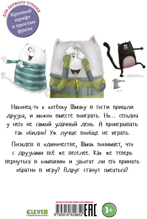 В данный момент этот товар отсутствует в продаже. Возможно, у нас найдется аналогичный или похожий товар здесь. Наконец-то к котёнку Шмяку в гости пришли друзья, и можно вместе поиграть. Но... сегодня у него не самый удачный день. А проигрывать так обидно! Уж лучше вообще не играть. Посидев в одиночестве, Шмяк понимает, что с друзьями всё же веселее. Как же теперь вернуться в компанию и захотят ли его принять обратно в игру? Вдруг станут смеяться?