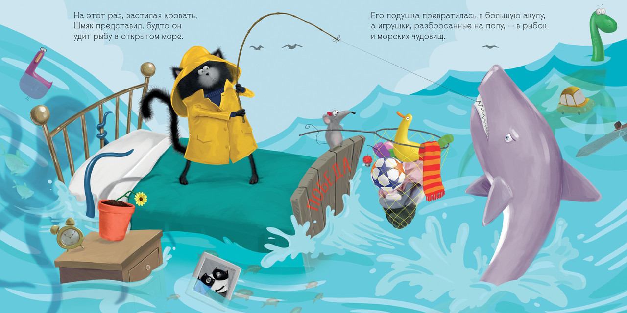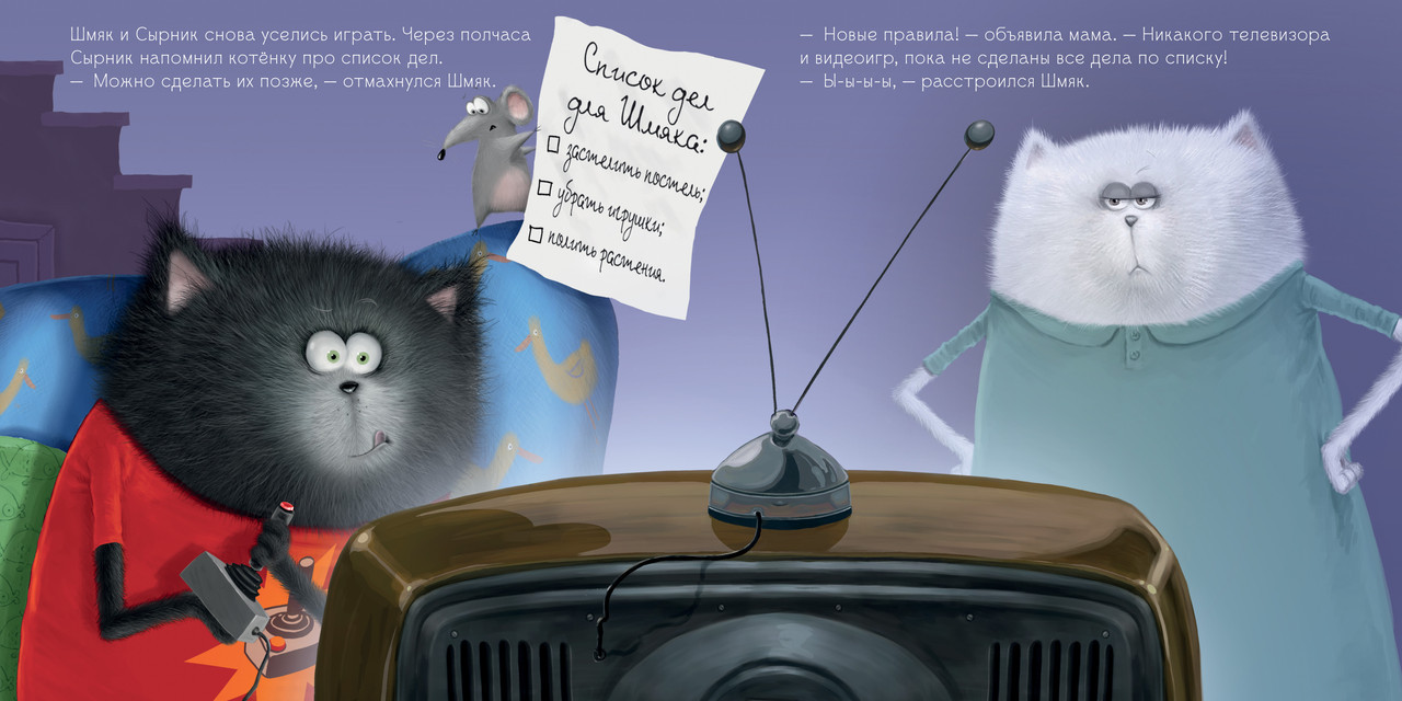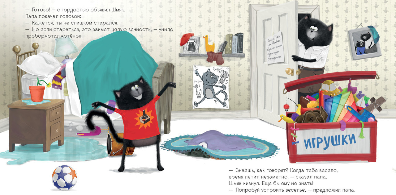 Серия: Котенок Шмяк Как приучить малыша помогать по дому? Папа котенка Шмяка знает один секрет! На семейном совете было решено, что теперь у Шмяка будет свой список домашних дел. Но... убирать игрушки, застилать постель, поливать цветы — это целая вечность пройдет! «Когда тебе весело, время летит незаметно», — подсказывает папа Шмяку. Убирая игрушки в ящик, Шмяк представил, будто нашел пиратский клад на необитаемом острове, и теперь ему надо сложить все золотые монеты в сундук. Кто бы мог подумать, что уборка может быть такой веселой! |