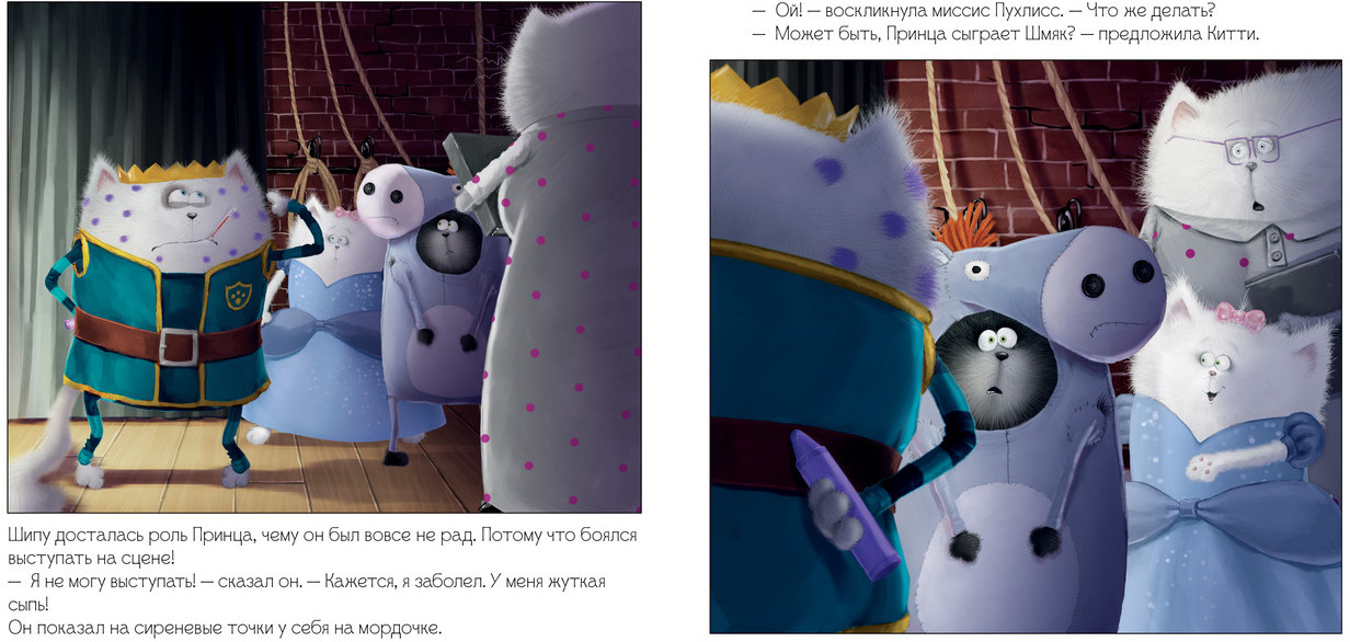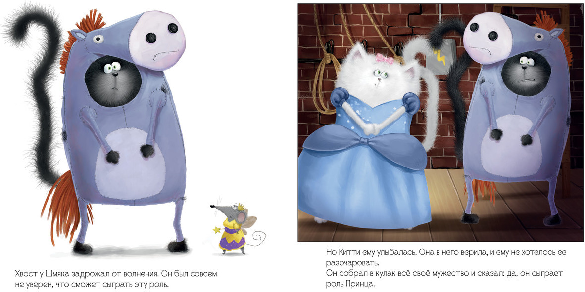 Серия: Котенок Шмяк Сегодня важный день — котенок Шмяк и его одноклассники играют в спектакле «Золушка». У Шмяка почетная роль коня, Шип будет принцем, а принцессой — конечно же, Китти. Но вот только бедняга Шип так разволновался, что не смог выйти на сцену. Этому спектаклю нужен новый герой! Китти очень хочет, чтобы Шмяк стал ее принцем. Но справится ли он с этой ответственной ролью или этот спектакль все заполнят надолго? |