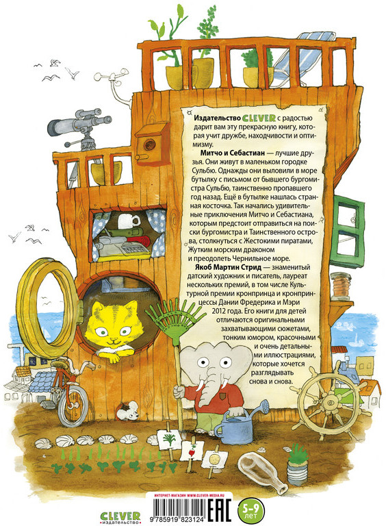 В данный момент этот товар отсутствует в продаже. Возможно, у нас найдется аналогичный или похожий товар здесь. Эта прекрасная книга для детей от издательства Clever учит дружбе, находчивости и оптимизму. Лучшие друзья Митчо и Себастиан живут в маленьком городке Сульбю. Однажды они выловили в море бутылку с письмом от бывшего бургомистра, таинственно пропавшего год назад. Еще в бутылке нашлась странная косточка. Так начались удивительные приключения наших героев, которым предстоит отправиться на поиски бургомистра и Таинственного острова, столкнуться с Жестокими пиратами, Жутким морским драконом и преодолеть Чернильное море.