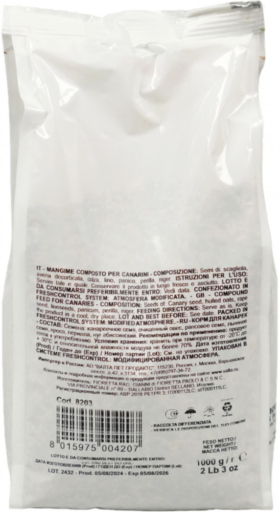 Серия: Canarini Повседневный сбалансированный корм для канареек. Корм содержит различные семена, обеспечивающие сбалансированный и разнообразный рацион для канареек. |