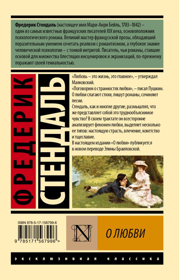💳 Оплатить за товар можно при получении 🇰🇿 Есть бесплатная доставка по Казахстану 🎁 Копите бонусы с каждой покупки Серия: Эксклюзивная классика «Любовь — это жизнь, это главное», — утверждал Маяковский. «Поговорим о странностях любви», — писал Пушкин. О любви слагают стихи, пишут романы, сочиняют песни. Стендаль, как и многие другие, размышлял, что же представляет из себя это труднообъяснимое чувство? В своем трактате он всесторонне анализирует феномен любви, выделяет несколько ее типов: настоящую страсть, влечение, кокетство и тщеславие. В настоящем издании «О любви» публикуется в новом переводе Элины Браиловской. |