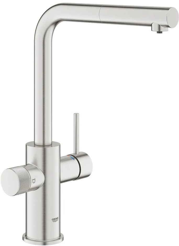 • Grohe Blue смеситель однорычажный для мойки с функцией очистки водопроводной воды;