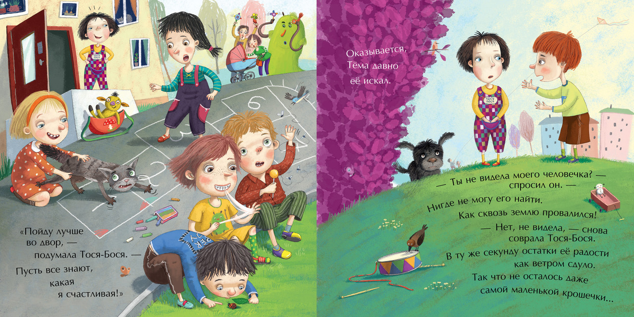 Это книжка, которую стоит прочитать каждому, кто когда-то сталкивался с завистью. А еще это новая история о любимице детей Тосе-Босе! У друга героини, Темы, и самокат быстрее, и бутерброды вкуснее, и даже игрушки лучше! Тося-Бося не может терпеть такую несправедливость и как-то вечером тайком забирает у него нитяного человечка, который очень ей понравился. Почему она никак не может порадоваться своему приобретению и что будет дальше, узнайте из этой книжки. В конце книги прилагается инструкция по созданию куколки, как у героини. Книжку придумала и нарисовала популярная художница и писательница Лина Жутауте. По ее мнению, книжка с картинками - первый шаг, чтобы полюбить чтение, а первую книжку о Тосе-Босе Лина придумала для сына. |