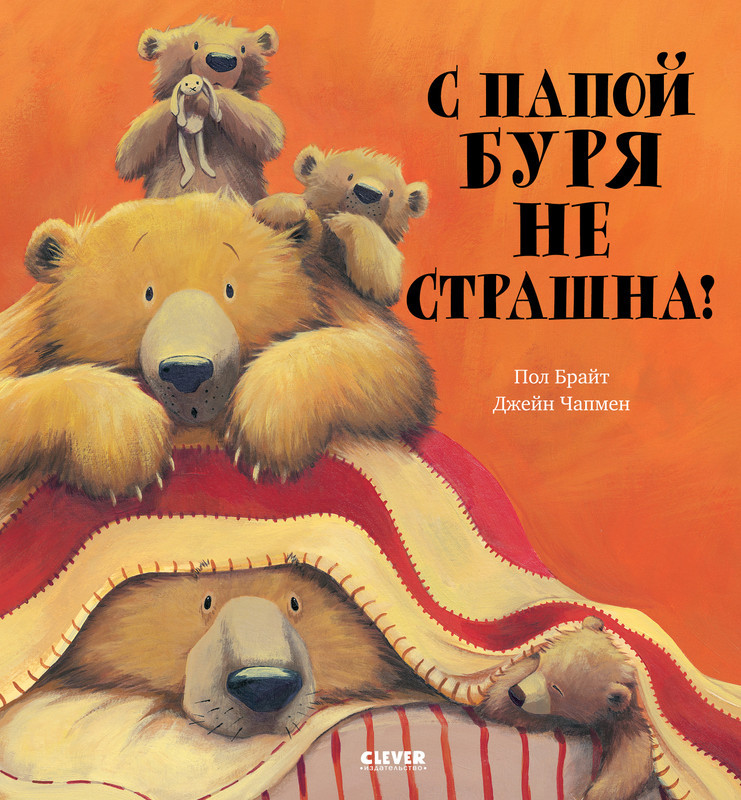 «С папой буря не страшна!» — красочная книжка-картинка от издательства Clever, добрая и веселая сказка для малышей о семье медведей.