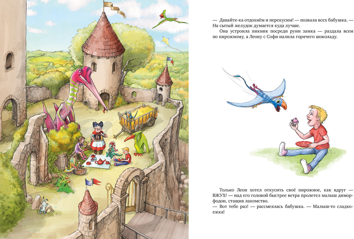А еще популярные приключения Леона и Софи в гостях у бабушки и ее ручных динозавров станут отличным подарком для всех мальчиков и девочек на Новый год (НГ) или день рождения (ДР), на 1 сентября или другой праздник. Подарите книгу сыну и дочери, внуку и внучке, отдельно или как дополнение к праздничному набору или подарочному комплекту лучшей художественной литературы для детей.