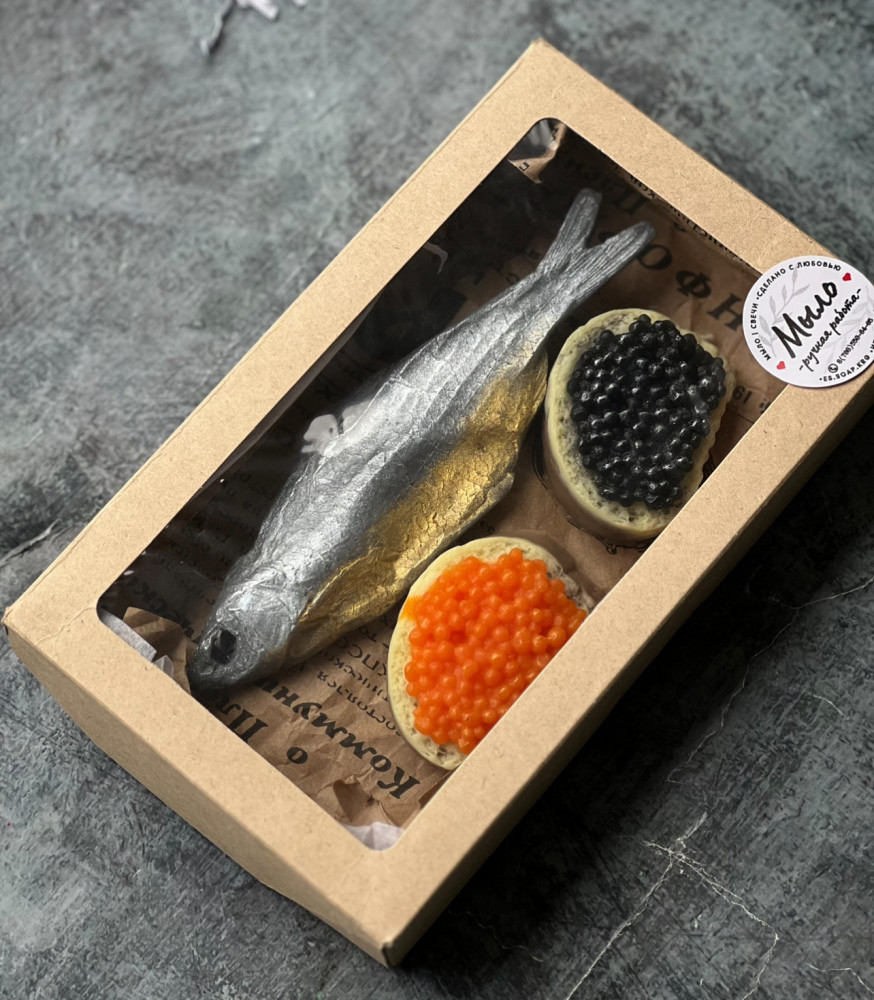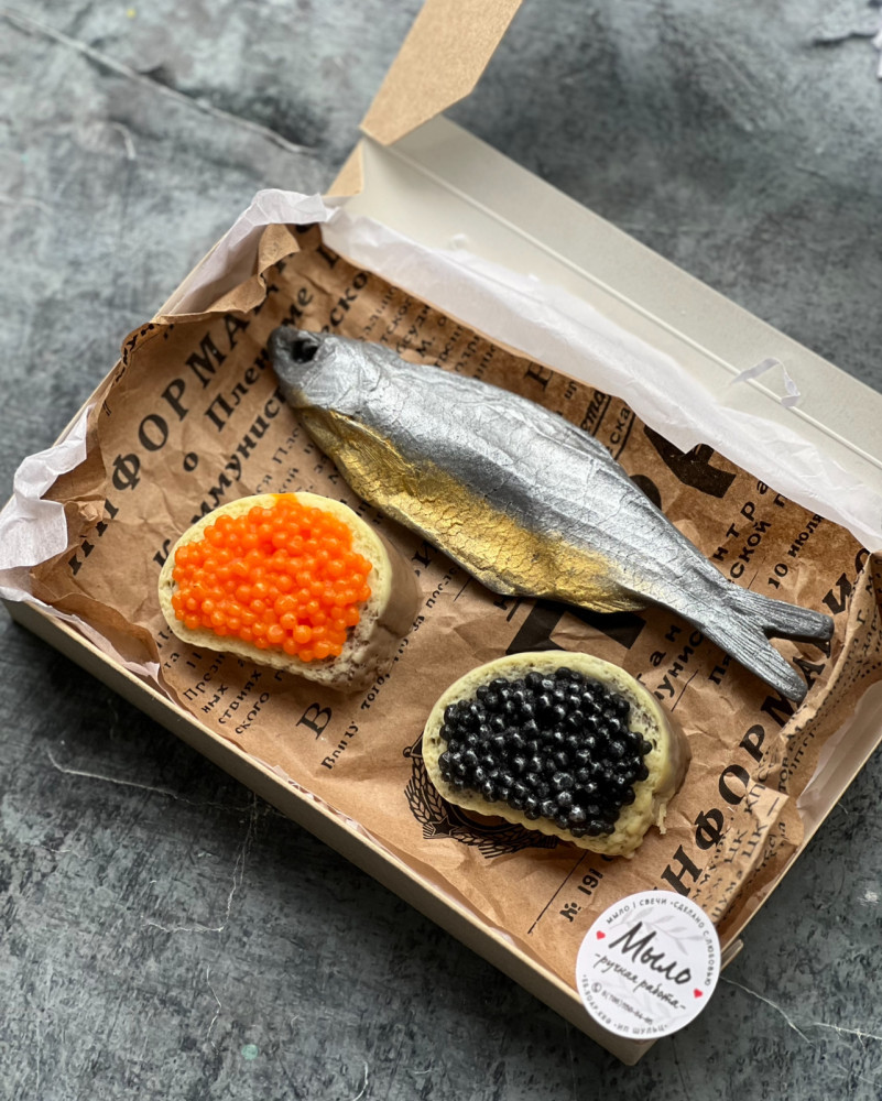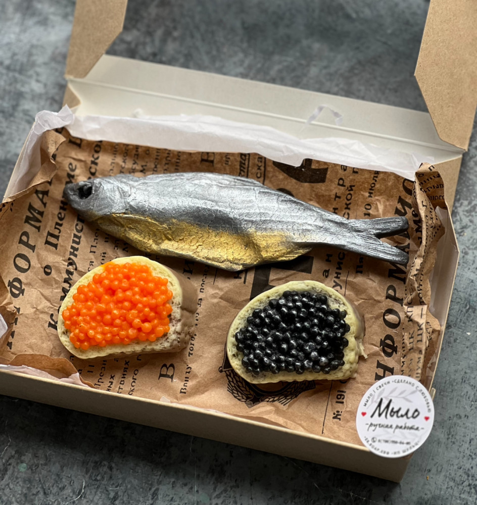 Подарочный набор мыла «Рыба Вобла и бутерброды с икрой»новинка