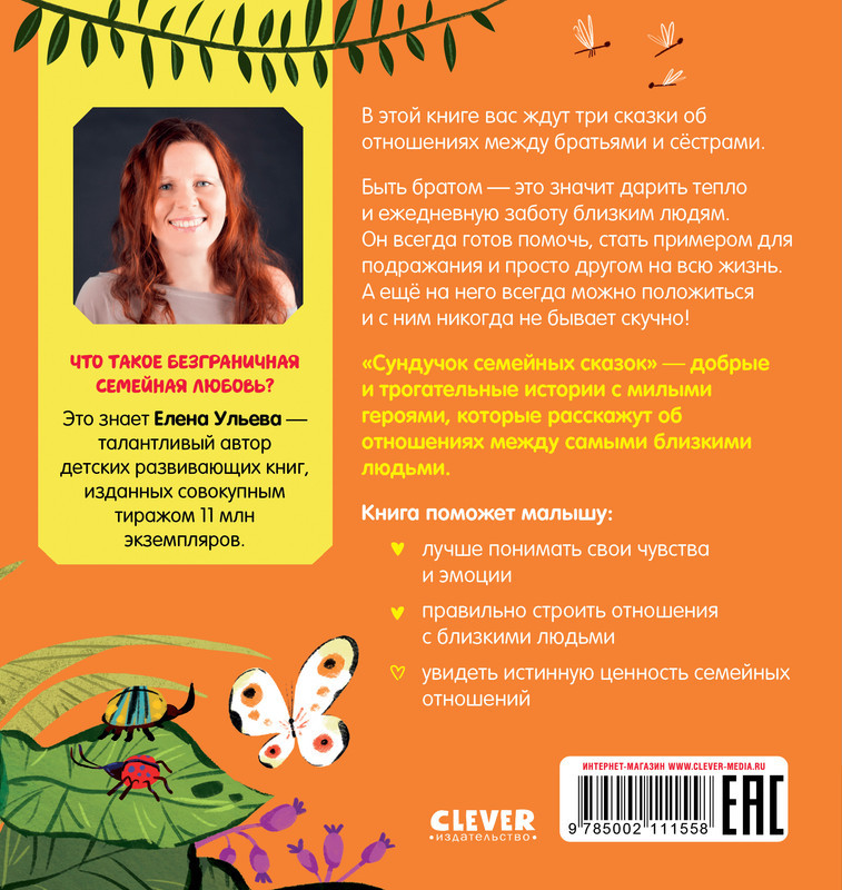 Серия: Семейные ценности Книга расскажет малышам о важности семейных уз и поможет еще крепче подружиться с братом или сестрой. Ведь герои этих сказок преодолевают проблемы, которые знакомы многим детям: ревность к младшим, ссоры из-за родительской любви, желание быть в центре внимания. Быть братом — это значит дарить тепло, поддержку и заботу близким. Брат всегда готов помочь, может стать примером для подражания и просто другом на всю жизнь. На него всегда можно положиться, а еще с ним никогда не бывает скучно! Об этом и многом другом малыш узнает из трех сказок про милых зверят. Прочитайте малышу книгу, обсудите с ним истории, спросите, как поступил бы он на месте персонажей, узнайте о его чувствах к братику или сестренке. Учите его заботиться о них и обращаться за помощью в случае необходимости. |