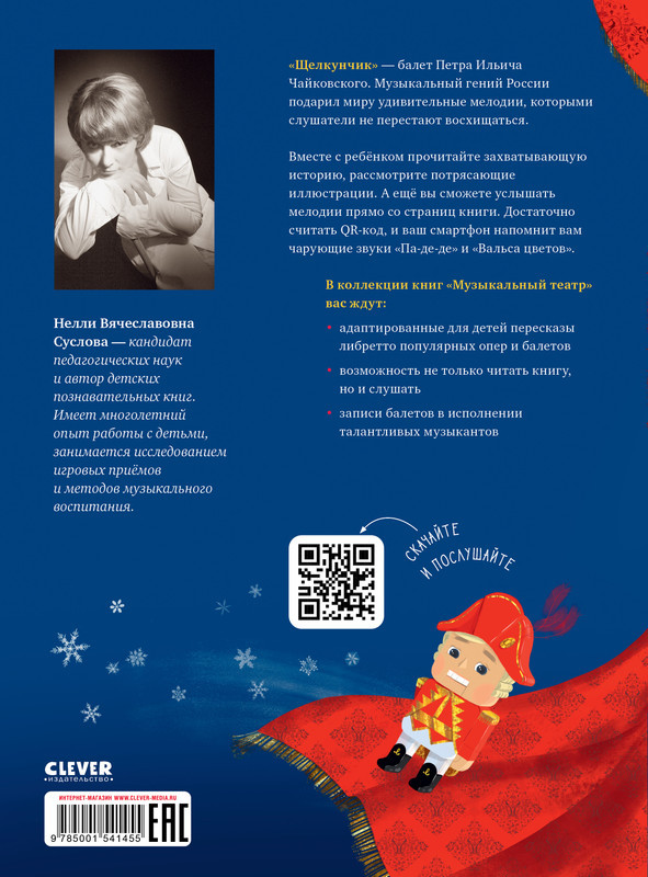 Серия: Clever-чтение В книге «Музыкальный театр. Щелкунчик» вас ждут не только новогодняя сказка с потрясающими иллюстрациями, но и фрагменты великого балета Чайковского. Достаточно скачать QR-код, и ваш смартфон напомнит вам чарующие звуки «Па-де-де» и «Вальса цветов». |