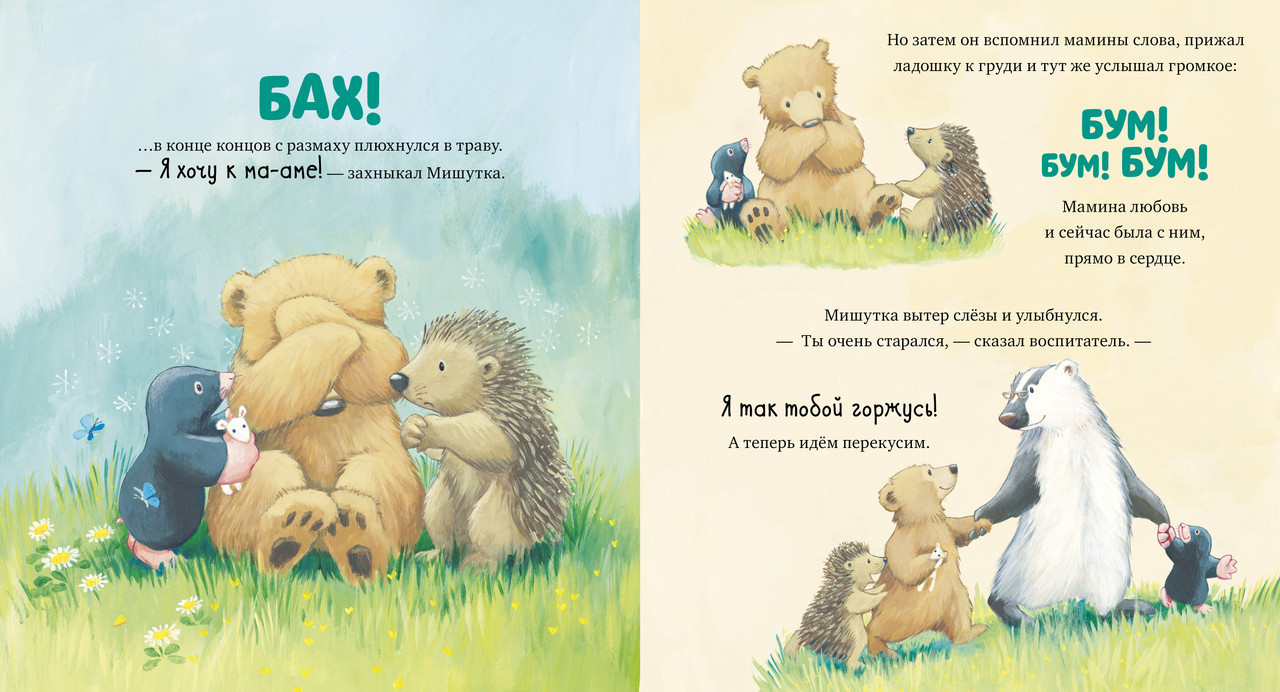 «Я люблю тебя всем сердцем» — сказка о безграничной любви между мамой и ребенком. Это история про маленького Мишутку, у которого все идет не так как он бы хотел: сначала малыш сломал любимый мамин цветок, потом весь испачкался, а вдобавок еще и потерял воздушного змея... А что, если мама его разлюбит?! А еще наш взрослый малыш медвежонок Мишутка скоро пойдет в детский сад, и разлука с мамой и привычным образом жизни, а также с любимыми игрушками его пугает. Мама научит его, как пронести свою любовь через долгий день разлуки, ведь она всегда будет рядом.