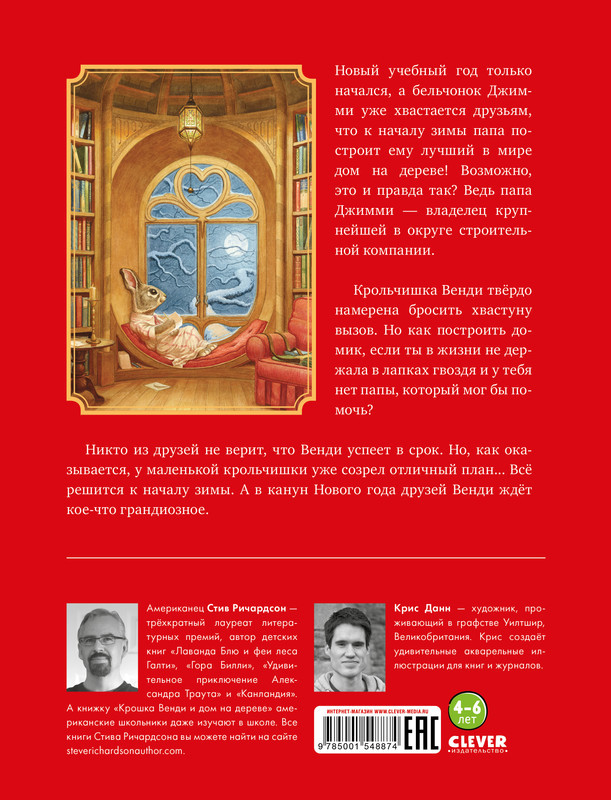 Серия: Книжки-картинки Мировой бестселлер "Крошка Венди и дом на дереве" - это одна из самых трогательных книг, которую вы когда-либо читали! Новый учебный год только начался, а бельчонок Джимми уже хвастается друзьям, что к началу зимы папа построит ему лучший в мире дом на дереве! Крольчишка Венди твердо намерена бросить вызов хвастуну. Никто из друзей не верит, что Венди успеет в срок. Но, как оказывается, у маленькой крольчишки уже созрел отличный план... Все решится к началу зимы. А в канун Нового года друзей Венди ждет кое-что грандиозное. Это история о том, что все в этой жизни возможно. Главное - верить в себя и свои силы. Книга научит никогда не сдаваться и действовать вопреки обстоятельствам, приободрит, придаст уверенности в себе и вдохновит на многие свершения. |
