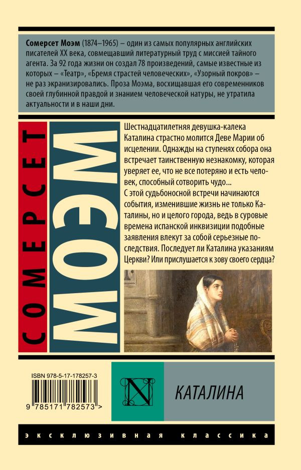 💳 Оплатить за товар можно при получении 🇰🇿 Есть бесплатная доставка по Казахстану 🎁 Копите бонусы с каждой покупки Серия: Эксклюзивная классика Шестнадцатилетняя девушка-калека Каталина страстно молится Деве Марии об исцелении. Однажды на ступенях собора она встречает таинственную незнакомку, которая уверяет ее, что не все потеряно и есть человек, способный сотворить чудо... С этой судьбоносной встречи начинаются события, изменившие жизнь не только Каталины, но и целого города, ведь в суровые времена испанской инквизиции подобные заявления влекут за собой серьезные последствия. Последует ли Каталина указаниям Церкви? Или прислушается к зову своего сердца? |