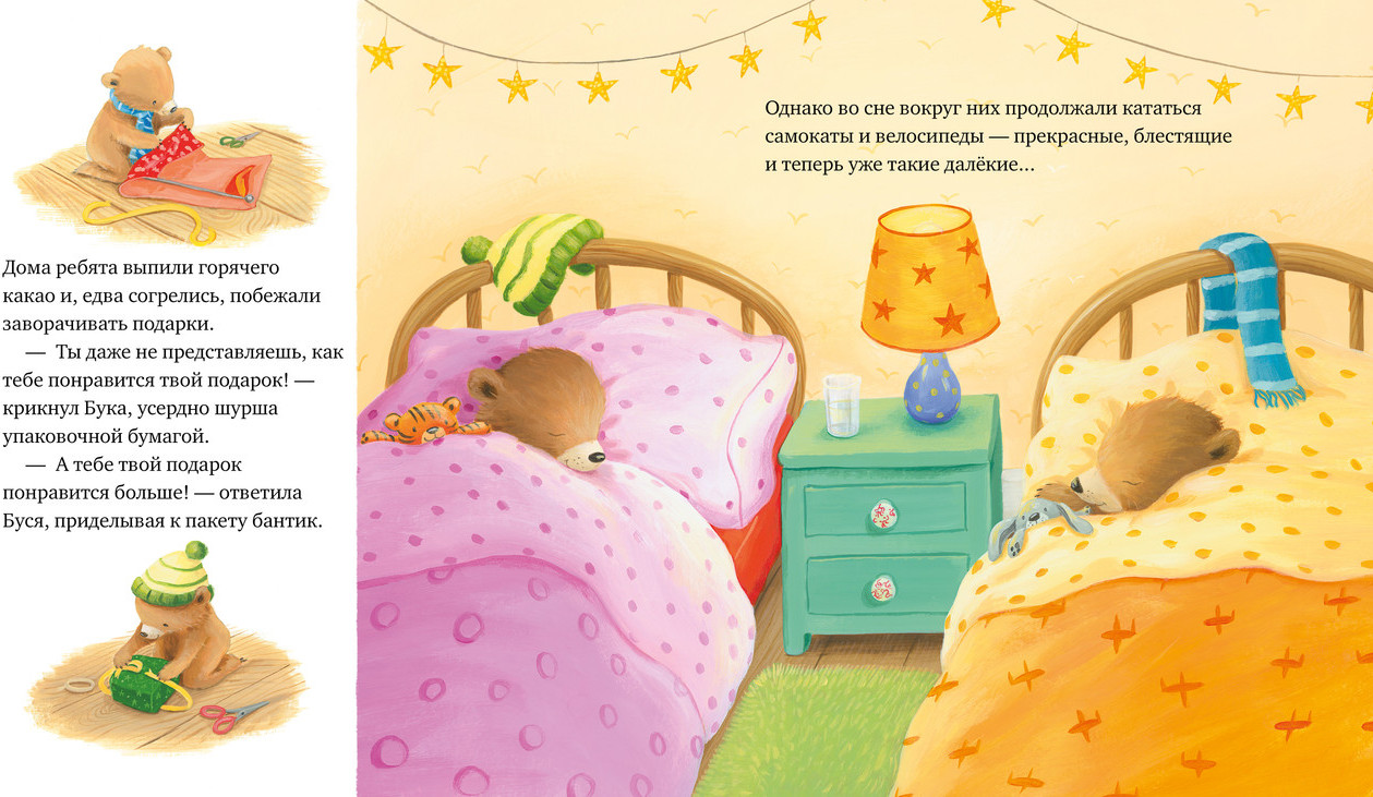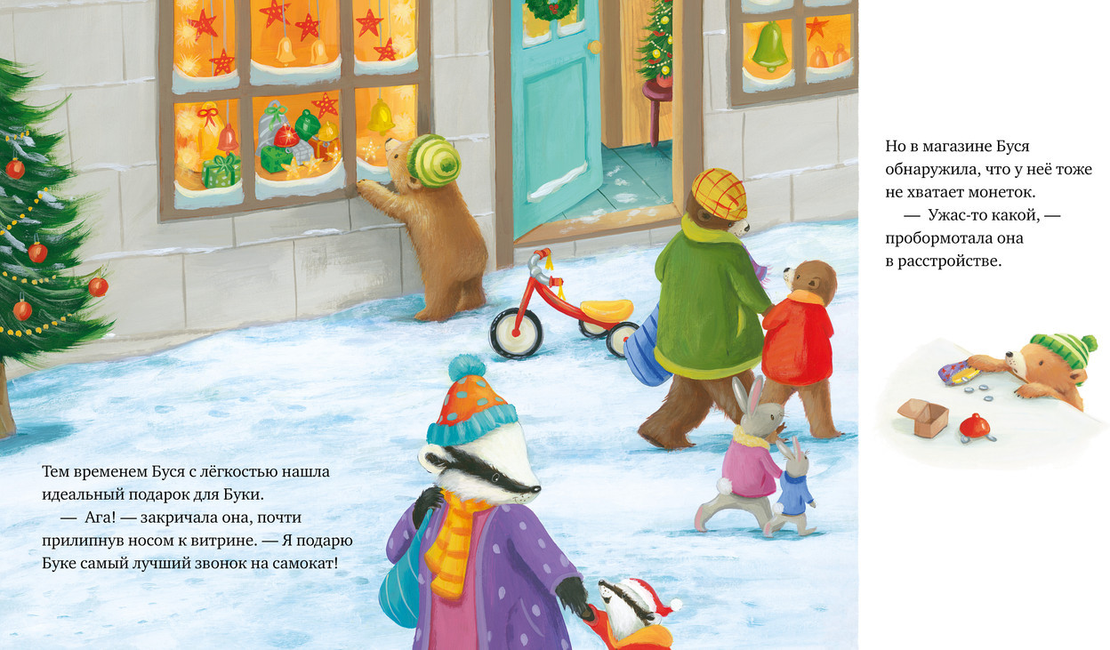 Лучший подарок на светеКэролайн Педлер, Стелла Дж. Джонс В данный момент этот товар отсутствует в продаже. Возможно, у нас найдется аналогичный или похожий товар здесь. Это невероятно трогательная история, которая учит доброте, заботе о близких и рассказывает, что порадовать друга порой гораздо приятнее, чем купить подарок для себя. Скоро Новый год, и медвежата Бука и Буся решили приготовить подарки друг другу. Бука приглядел флажок для Бусиного велосипеда, а Буся в свою очередь выбрала классный звонок для самоката. Но чтобы порадовать друг друга, им придется пожертвовать любимыми вещами. Как поступят медвежата? |