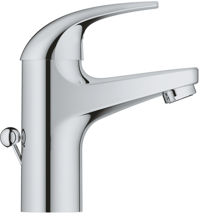 Выдающийся однорычажный смеситель для раковины Grohe BauCurve — отличное решение для современной ванной комнаты. Управление осуществляется с помощью металлической рукоятки. Излив стандартной высоты немного приподнят для удобства пользователя и является отличным сочетанием для обычной раковины. Керамический картридж Grohe LongLife обеспечивает надежность управления потоком воды. Донным клапаном можно управлять с помощью небольшого рычажка позади смесителя. Этот смеситель можно установить в течение нескольких минут благодаря гибкой подводке и системе быстрой инсталляции.