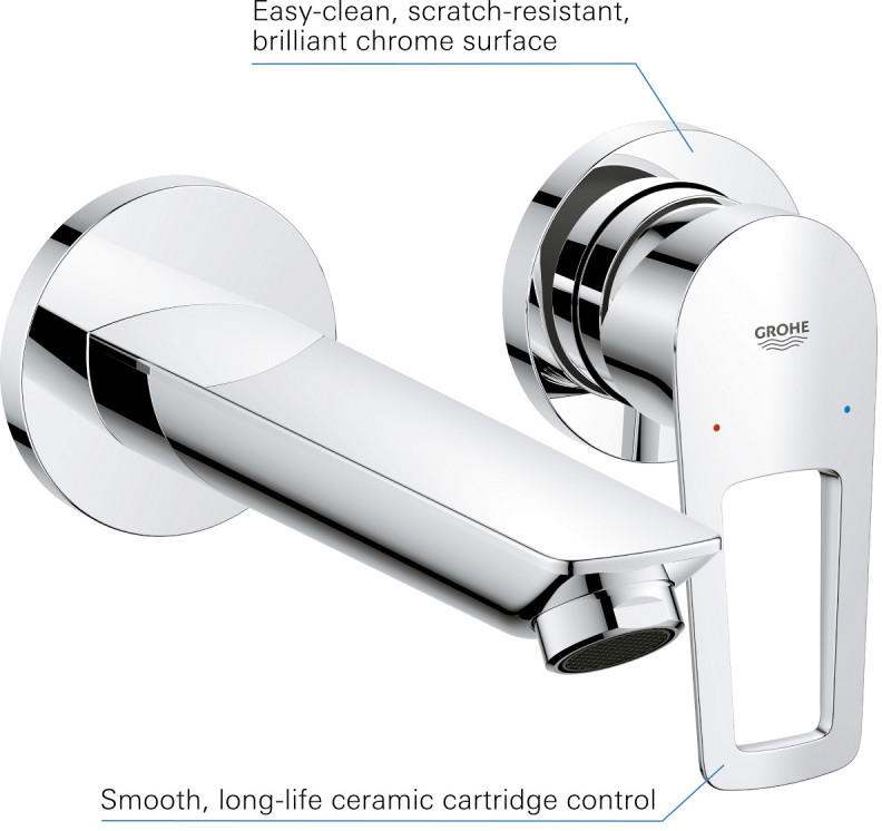 Смеситель для раковины Grohe BauLoop — идеальное решение для вашей ванной комнаты! Благодаря настенному монтажу и комплекту для установки, этот смеситель легко интегрируется в интерьер и обеспечивает максимальный комфорт при использовании. Металлическая рукоятка придаёт смесителю стильный и современный вид, а керамический картридж 35 мм гарантирует долговечность и точность регулировки напора воды. Хромированная поверхность устойчива к коррозии и легко очищается от известкового налёта, сохраняя свой блеск на долгое время. Аэратор равномерно распределяет струю воды, делая её мягкой и приятной для кожи, а расстояние до центра и вынос позволяют удобно разместить смеситель на раковине. Не упустите возможность обновить свою ванную комнату с помощью смесителя для раковины Grohe BauLoop!