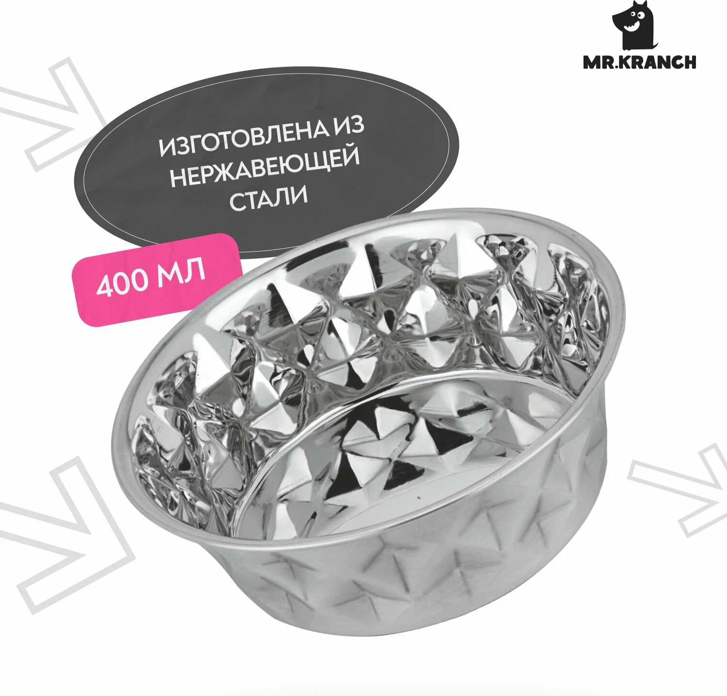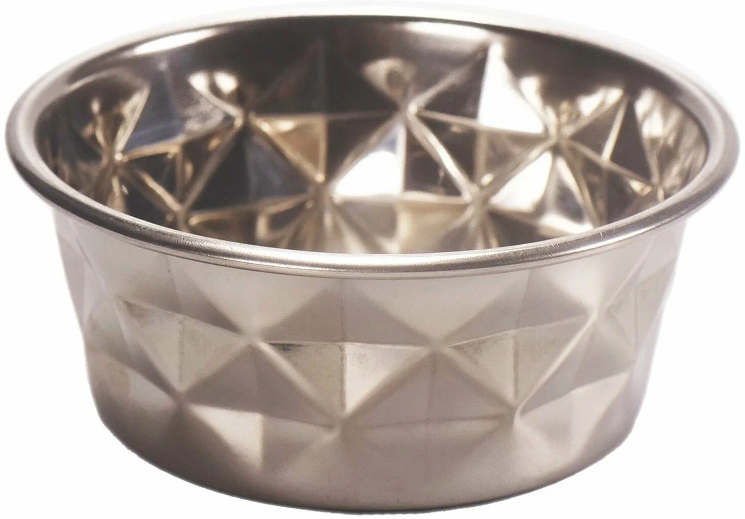 Стильная миска для кормления питомцев из нержавеющей стали. Дизайн миски имитирует огранку драгоценных камней, подчёркивая важность приёма пищи для вашего питомца. Удобная эргономичная форма миски наилучшим образом подходит для всех видов корма и воды. Миска устойчива и не переворачивается за счёт силиконовой накладки на дне. Прочный и безопасный материал – нержавеющая сталь – надолго сохранит свежесть воды и корма.