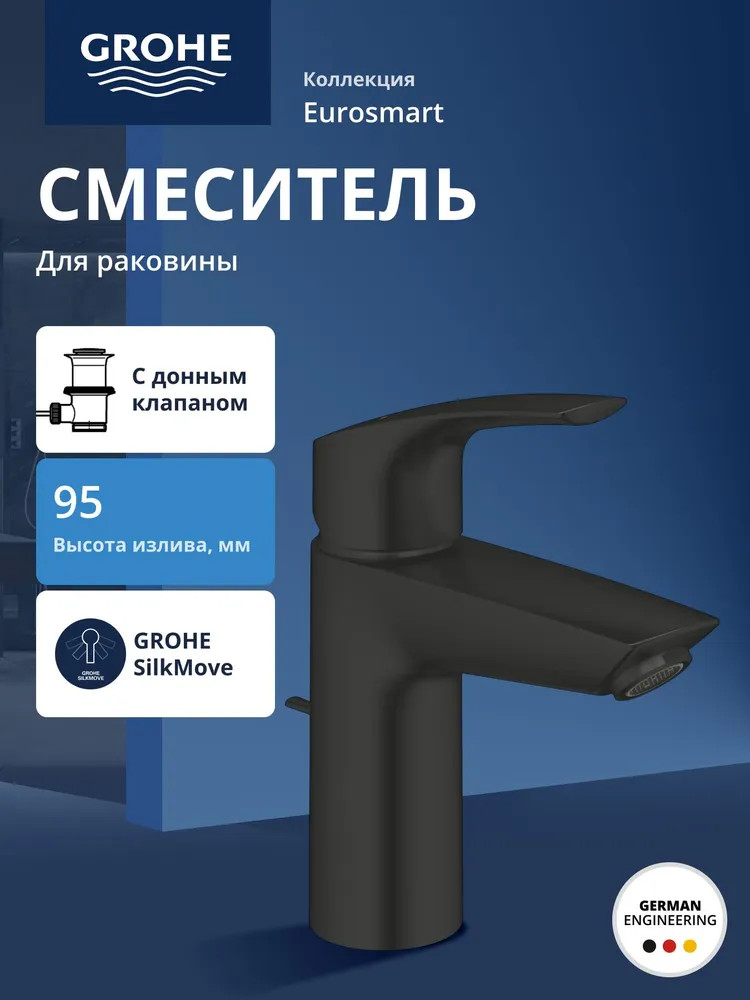 Матово-черный смеситель для раковины Eurosmart делает жизнь проще, комфортнее и красивее — плюс встроенная технология экономии воды. Завершите обновление ванной комнаты с этим однорычажным смесителем, который делает заявление как в эстетике, так и в практичности. Внутри керамический картридж обеспечивает прочный, точный контроль объема и температуры с помощью цельнометаллического рычага. Встроенный ограничитель температуры экономит энергию, а технология экономии воды снижает расход до макс. 5 л/мин (при 3 бар) без ущерба для производительности. Изолированные внутренние водные пути гарантируют, что вода в кране не содержит свинца и никеля. Сливной клапан управляется небольшим стержнем на задней стороне крана и позволяет легко открывать и закрывать его, не намочив руки. Разработанный для установки на одно отверстие и оснащенный системой с гибкими соединительными шлангами, смеситель можно установить в кратчайшие сроки. А покрытие износостойкое и легко очищается, поэтому потрясающая матовая черная поверхность прослужит всю жизнь.