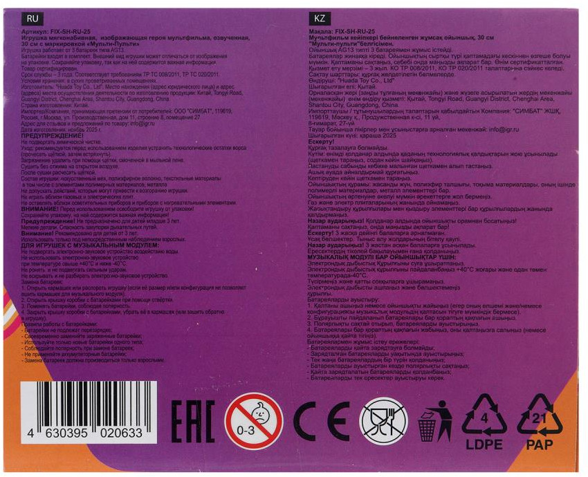 Серия: Фиксики Озвученная мягкая игрушка «Шпуля» ТМ «Мульти-Пульти» станет отличным подарком для маленьких поклонников мультсериала «Фиксики». Добродушная и весёлая Шпуля — одна из фиксиков, маленьких существ, живущих внутри различных приборов и механизмов. С этой плюшевой игрушкой дети смогут воссоздать уже знакомые сюжеты из мультика или придумать новые. Ребёнку не придётся скучать по любимому герою мультсериала, ведь теперь он всегда будет с ним. Наличие специального кармашка на липучке облегчает процесс ухода за игрушкой и замену батареек. Шпуля будет рад встрече со своими друзьями — соберите всю коллекцию мягких игрушек из мультсериала «Фиксики»! Игра с озвученной мягкой игрушкой ТМ «Мульти-Пульти» развивает: слуховое восприятие, воображение, фантазию, тактильное восприятие и социально-коммуникативные навыки. |