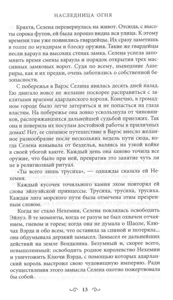 Наследница огня.В данный момент этот товар отсутствует в продаже. Возможно, у нас найдется аналогичный или похожий товар здесь. Серия: Lady Fantasy По заданию короля-тирана Селена Сардотин, величайшая в Адарланском королевстве женщина-ассасин, отправляется на континент, где магия еще сохранилась, а не исчезла, как в ее родной Эрилее. В планы Селены вовсе не входит исполнять преступные замыслы короля. Она ищет встречи с Маэвой — королевой народа фэ, ведь королева — единственная, кто может ей рассказать о таинственных Ключах Вэрда, созданных расой демонов, чтобы овладеть миром. Но встреча с королевой не приносит разгадки тайны, Селена должна сама ее разгадать, а для этого ей следует обучиться управлять магией. |
