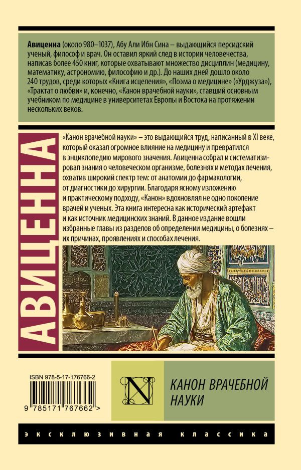 💳 Оплатить за товар можно при получении 🇰🇿 Есть бесплатная доставка по Казахстану 🎁 Копите бонусы с каждой покупки Серия: Эксклюзивная классика «Канон врачебной науки» — это выдающийся труд, написанный в XI веке, который оказал огромное влияние на медицину и превратился в энциклопедию мирового значения. Авиценна собрал и систематизировал знания о человеческом организме, болезнях и методах лечения, охватив широкий спектр тем: от анатомии до фармакологии, от диагностики до хирургии. Благодаря ясному изложению и практическому подходу, «Канон» вдохновлял не одно поколение врачей и ученых. Эта книга интересна как исторический артефакт и как источник медицинских знаний. В данное издание вошли избранные главы из разделов об определении медицины, о болезнях — их причинах, проявлениях и способах лечения. |