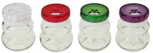 Аккуратные баночки, размер удачный - не мелкие и не крупные, как раз под пачку специй. Крышечка сверху с дырочками разных размеров. Удобно!
