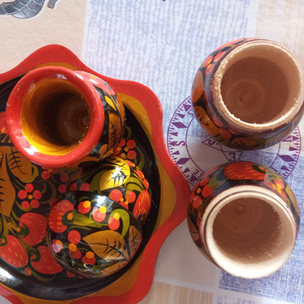 Только солонка внутри покрыта лаком,а перечницы нет. В целом красиво!