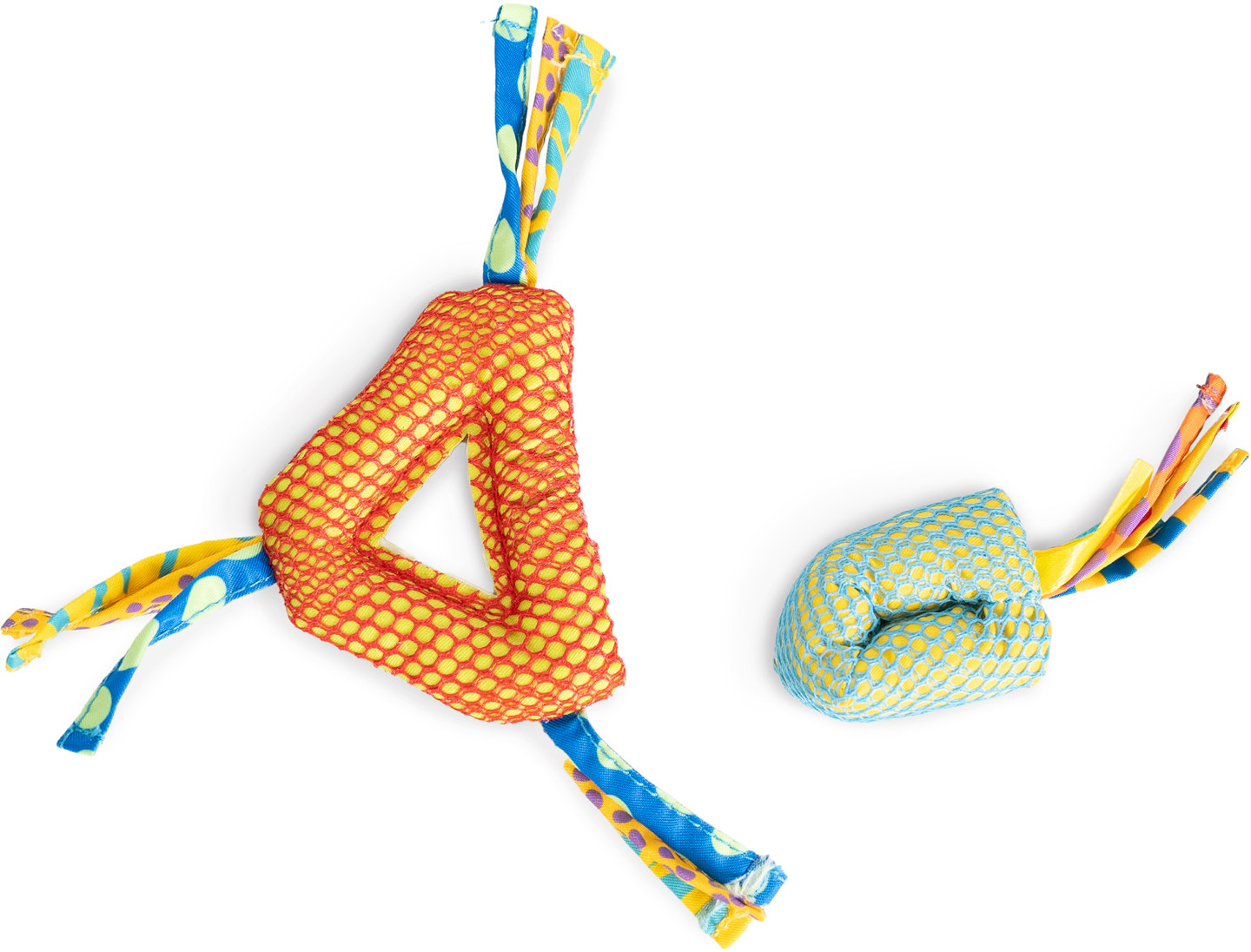 Игрушка Catstages Dental для кошек «Мульти-жевалки» c кошачьей мятой представляют собой набор из двух небольших разнофактурных игрушек. Сетчатая поверхность и пропитка кошачьей мятой призваны заботиться о чистоте зубов кошки, мягко очищая налет и зубной камень, а забавные хвостики дразнят кошку, провоцируя на игру. Отлично подходит для интерактивной и одиночной игры для кошек всех возрастов.