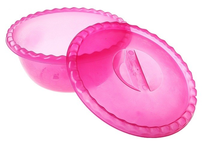 Пластик тонкий, но без запаха. Вообще миска мне очень нравиться, самое удобное то, что есть крышка. Часто я в ней ставлю дрожжевое тесто и опять таки мне нравится, что тесто можно хорошо закрыть крышкой, а не полотенцем. Или что то убрать в холодильник, закрыв крышкой от запахов или обветривания. Конечно для салатника это миска большевата, так как вместительность миски хорошее.