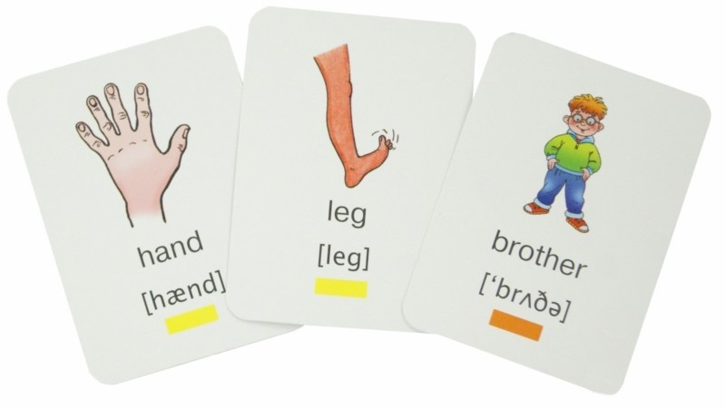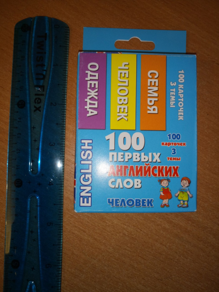 Очень понравились карточки. Плотный картон, размер небольшой, как раз для детских ручек. С одной стороны слово по-русски и его не цветное изображение, с другой стороны перевод этого слова на английский язык с цветным изображением и транскрипцией. Весело изучать английский язык в такой игровой форме!