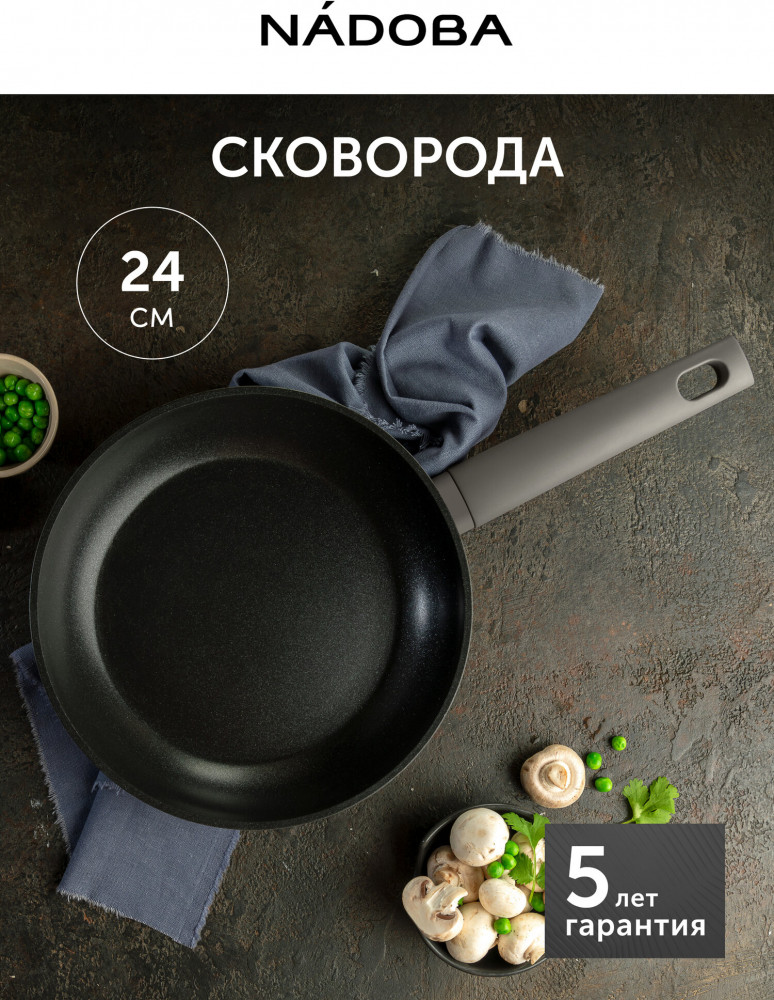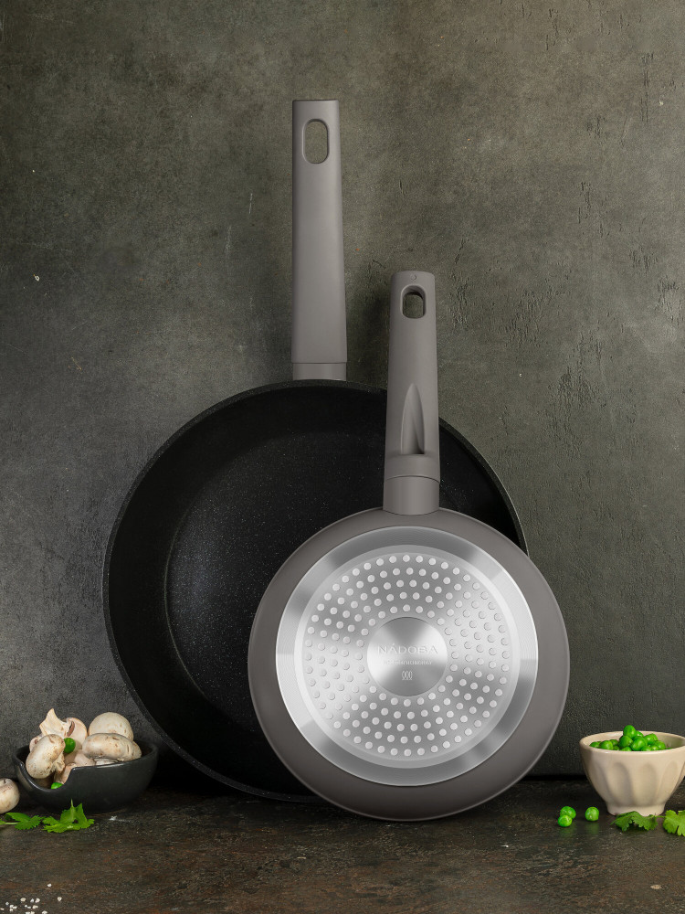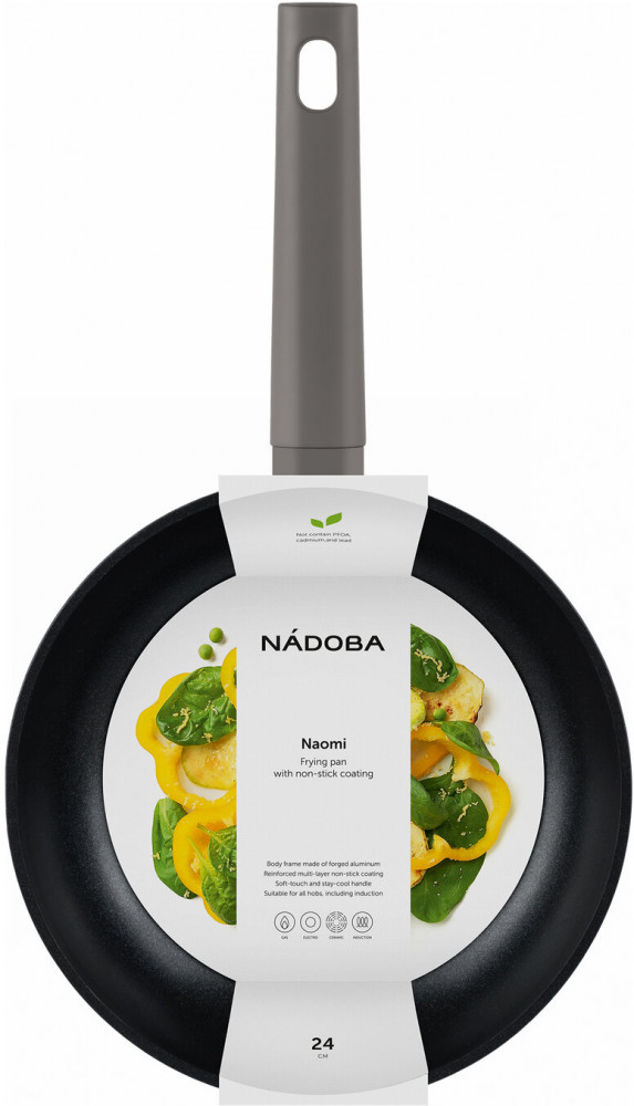 Посуда серии Naomi изготовлена из кованого алюминия с особо прочным 4-слойным антипригарным покрытием QuanTanium от компании PPG. Благодаря наличию титана в формуле покрытия оно обладает очень высокими показателями износостойкости, что позволяет использовать посуду каждый день в течение нескольких лет. Антипригарное покрытие серии Naomi не содержит PFOA, кадмий, свинец, а также любых других вредных веществ и полностью безопасно. Высокая прочность антипригарного покрытия позволяет использовать при приготовлении пищи неострые металлические инструменты. Массивный корпус из кованого алюминия обеспечивает равномерной нагрев всей поверхности посуды и не деформируется при нагревании или после частого использования. Удобные бакелитовые ручки с покрытием «Софт-тач» не нагреваются и не расположены к выскальзыванию из рук. Подходит для всех типов плит, включая индукционные. Сковороды Naomi отлично сочетаются с серией кухонных ножей Maury.