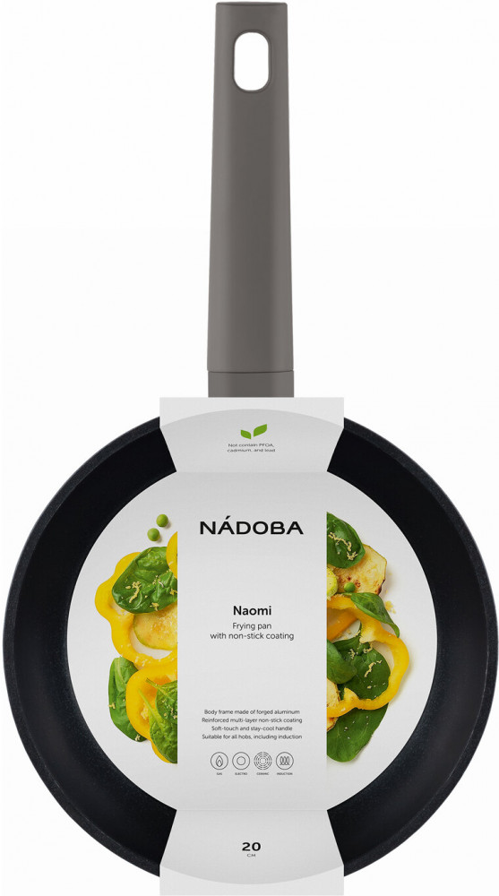 Посуда серии Naomi изготовлена из кованого алюминия с особо прочным 4-слойным антипригарным покрытием QuanTanium от компании PPG. Благодаря наличию титана в формуле покрытия оно обладает очень высокими показателями износостойкости, что позволяет использовать посуду каждый день в течение нескольких лет. Антипригарное покрытие серии Naomi не содержит PFOA, кадмий, свинец, а также любых других вредных веществ и полностью безопасно. Высокая прочность антипригарного покрытия позволяет использовать при приготовлении пищи неострые металлические инструменты. Массивный корпус из кованого алюминия обеспечивает равномерной нагрев всей поверхности посуды и не деформируется при нагревании или после частого использования. Удобные бакелитовые ручки с покрытием «Софт-тач» не нагреваются и не расположены к выскальзыванию из рук. Подходит для всех типов плит, включая индукционные. Сковороды Naomi отлично сочетаются с серией кухонных ножей Maury.