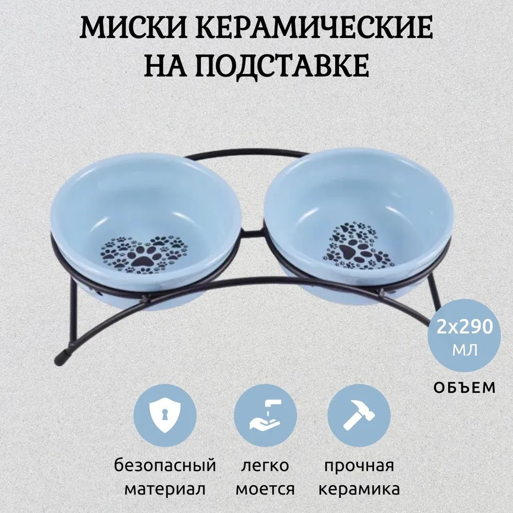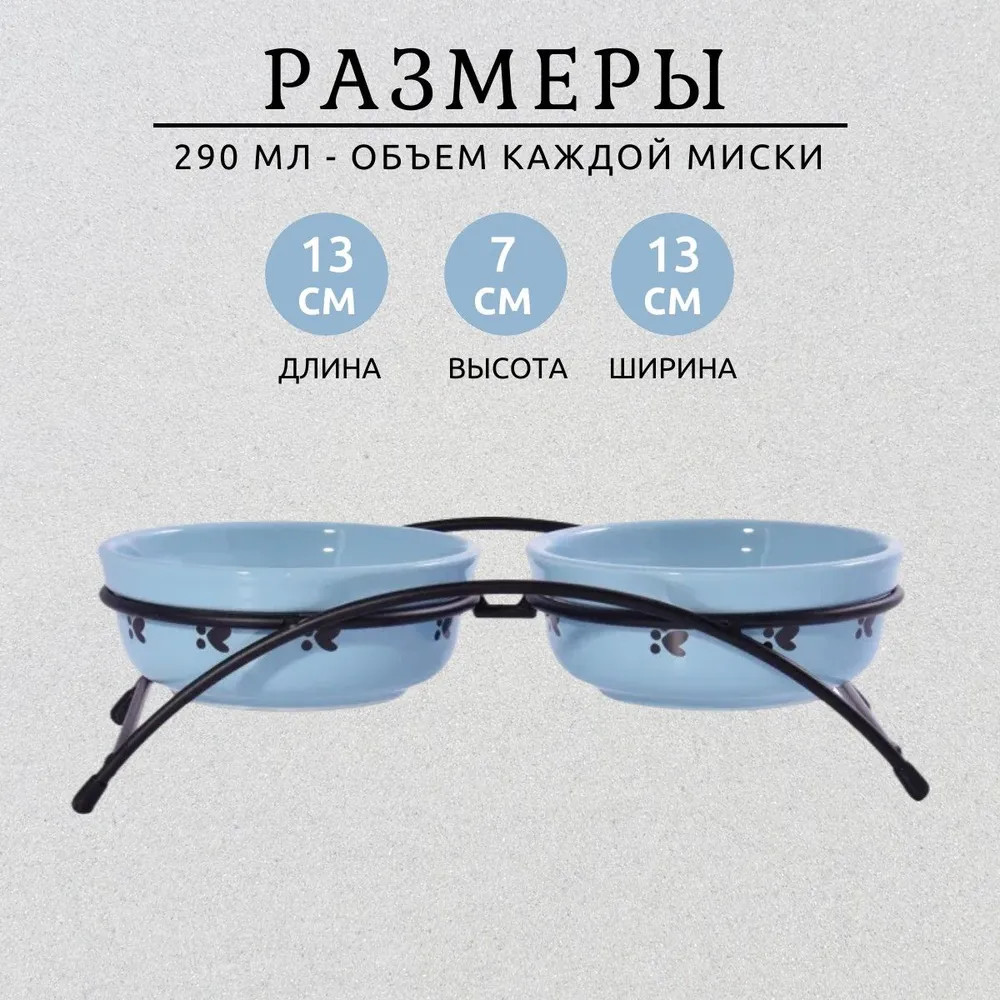 Керамическая миска Mr.Kranch двойные на подставке — это стильное и элегантное дополнение к любому интерьеру. Изготовлена из высококачественной керамики, которая не только красива, но и практична в использовании. Материал миски гарантируют ее долговечность и сохранность эстетического вида. Керамика не выцветает и не теряет своих свойств. Можно использовать для корма или лакомств. Можно мыть в посудомоечной машине.