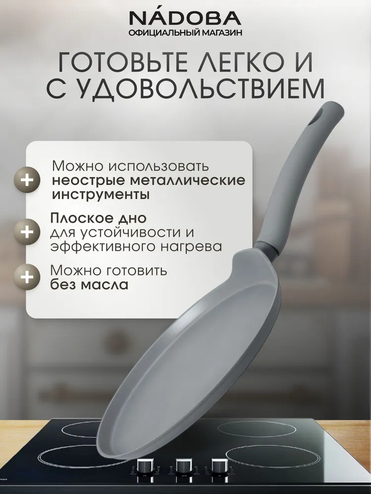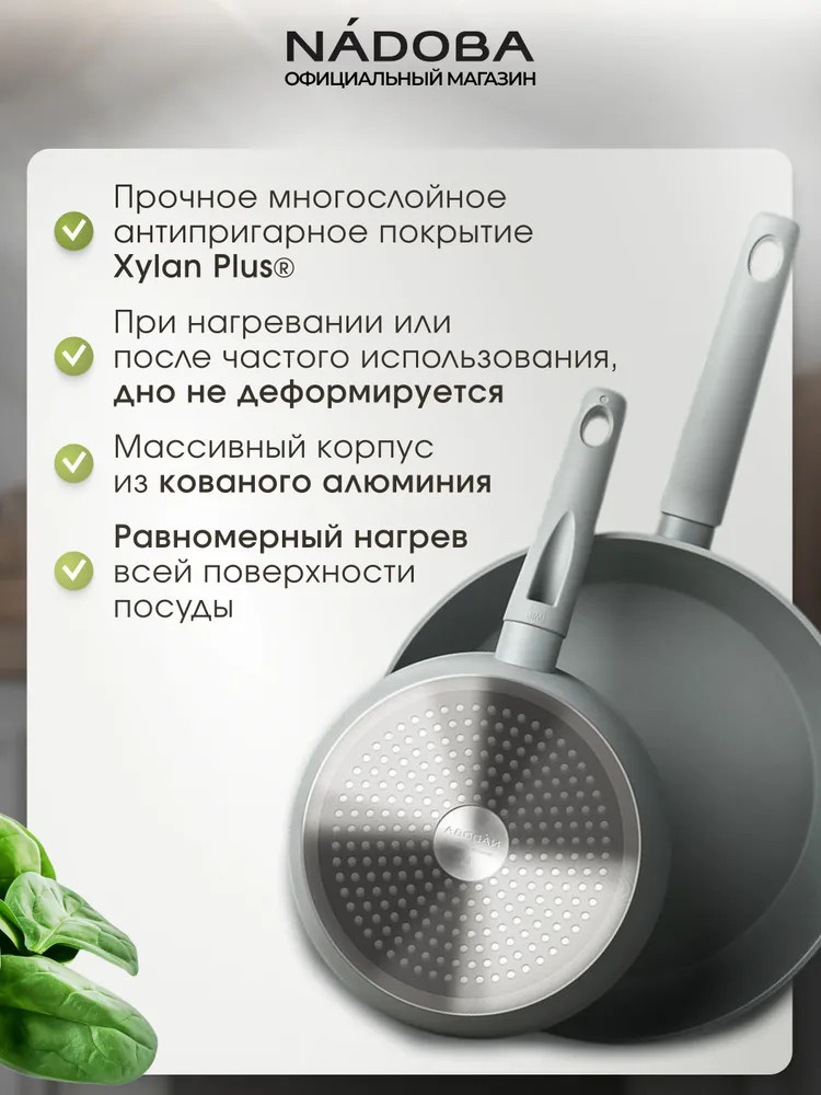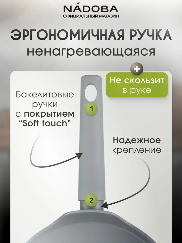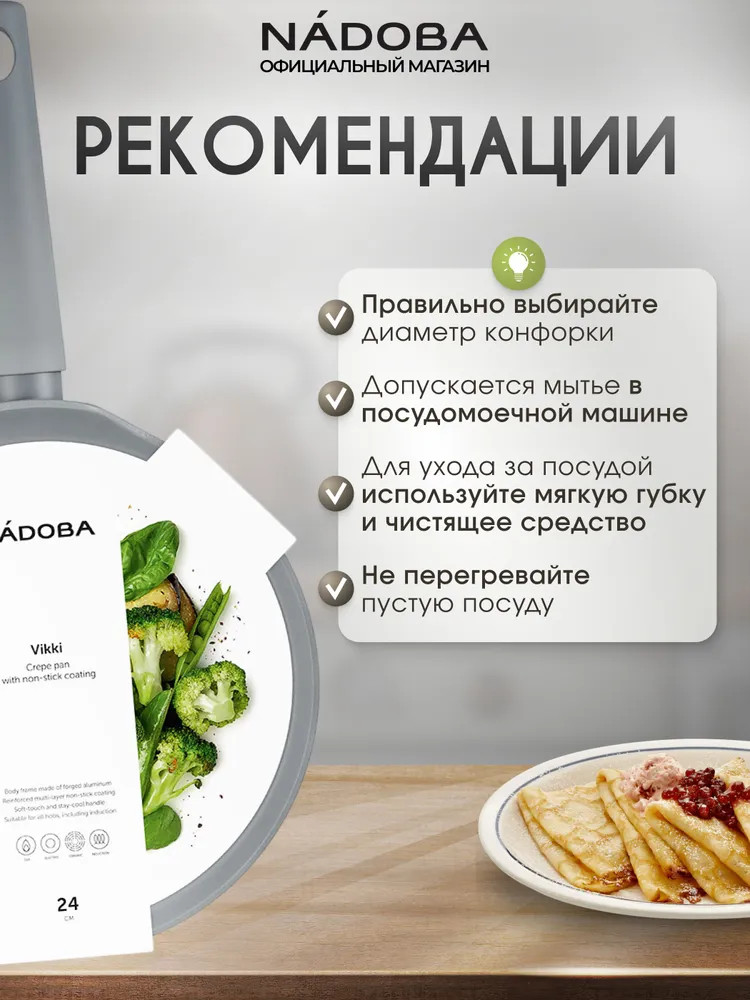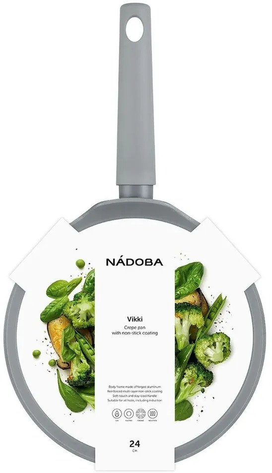 Серия: Vikki Блинная сковорода Nadoba коллекции Vikki 24 см изготовлена из высококачественного кованого алюминия, который обеспечивает равномерный нагрев всей поверхности сковородки, не деформируется при нагревании и подходит для ежедневного использования. Ручка с покрытием «Софт-тач» на корпусе алюминиевой сковороды включает в свой состав бакелит — прочный термостойкий пластик, который не нагревается во время готовки и облегчает работу с горячей посудой, а также предотвращает выскальзывание сковороды из рук. |