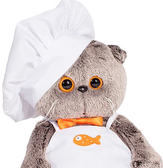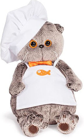 Когда наш гурман Басик надевает свой белоснежный хлопковый поварской колпак, накрахмаленный фартук с декоративной рыбкой и бантик-бабочку в цвет своих медовых глаз, на кухне закипает работа, и все блюда однозначно становятся вкуснее, если приготовлены знаменитым кулинором Котовасии — талантливым Басиком!
