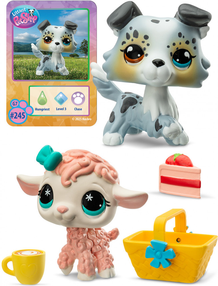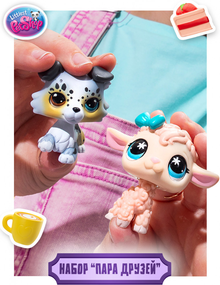 Организуйте идеальный летний пикник! Главные герои набора «Пара друзей» — Колли и милая Овечка с подвижными головами. Набор включает в себя всё необходимое для проведения идеального пикника: корзинку, кусочек любимого торта и чашечку кофе. В набор также входит уникальная коллекционная карточка, где вы найдете интересную информацию об одном из питомцев. Оригинальные петы LPS имеют уникальную метку в виде аббревиатуры бренда, подобно тому, как в реальной жизни отмечены клеймом домашние животные из питомников. Этот комплект станет прекрасным дополнением к любой коллекции Littlest Pet Shop, а также подарит массу удовольствия в игре.